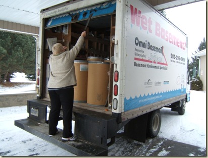 We take the six barrels of freeze-dried vegetables to Flamborough Christian Fellowship…